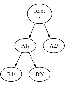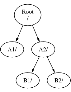 Sia A il file system root. Se usi il comando ls per visualizzare il contenuto di questa directory dovresti vedere due sottodirectory, A1 e A2. L'albero delle directory assomiglia a questo: