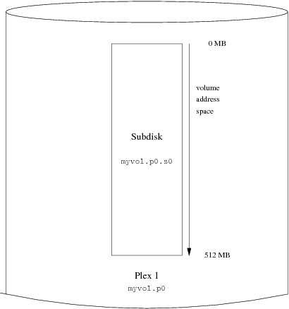 P myvol.p0 C State: up Subdisks: 1 Size: 512 MB